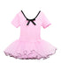 Vestido de ballet elaborado con algodón, manga corta. Ideal para gimnasia, danza y ballet. Características: - Tejido de punto suave al tacto. - Tutu con brillantes. - Cintura con volantes.