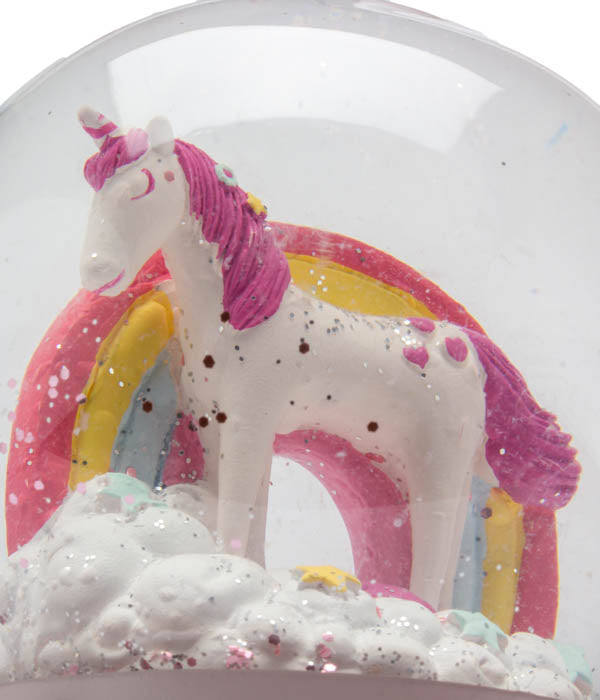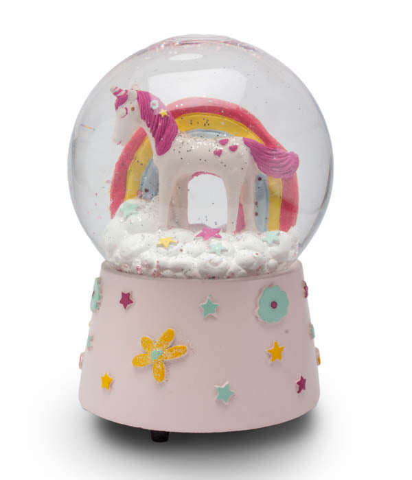 Bellamente hecho a mano y pintado, ¡mira cómo brilla el unicornio después de agitarlo ¡Estos son el accesorio o regalo perfecto para el dormitorio!nLa base está hecha de resina con un globo terráqueo irrompible y rollo musical debajo. Edad Recomendama mayores de 3 años